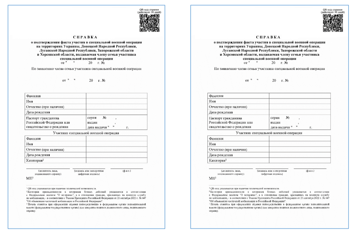 - для членов семьи участника СВО — справка, подтверждающая, что гражданин действительно является членом семьи участника СВО или в электронном формате если допускается;